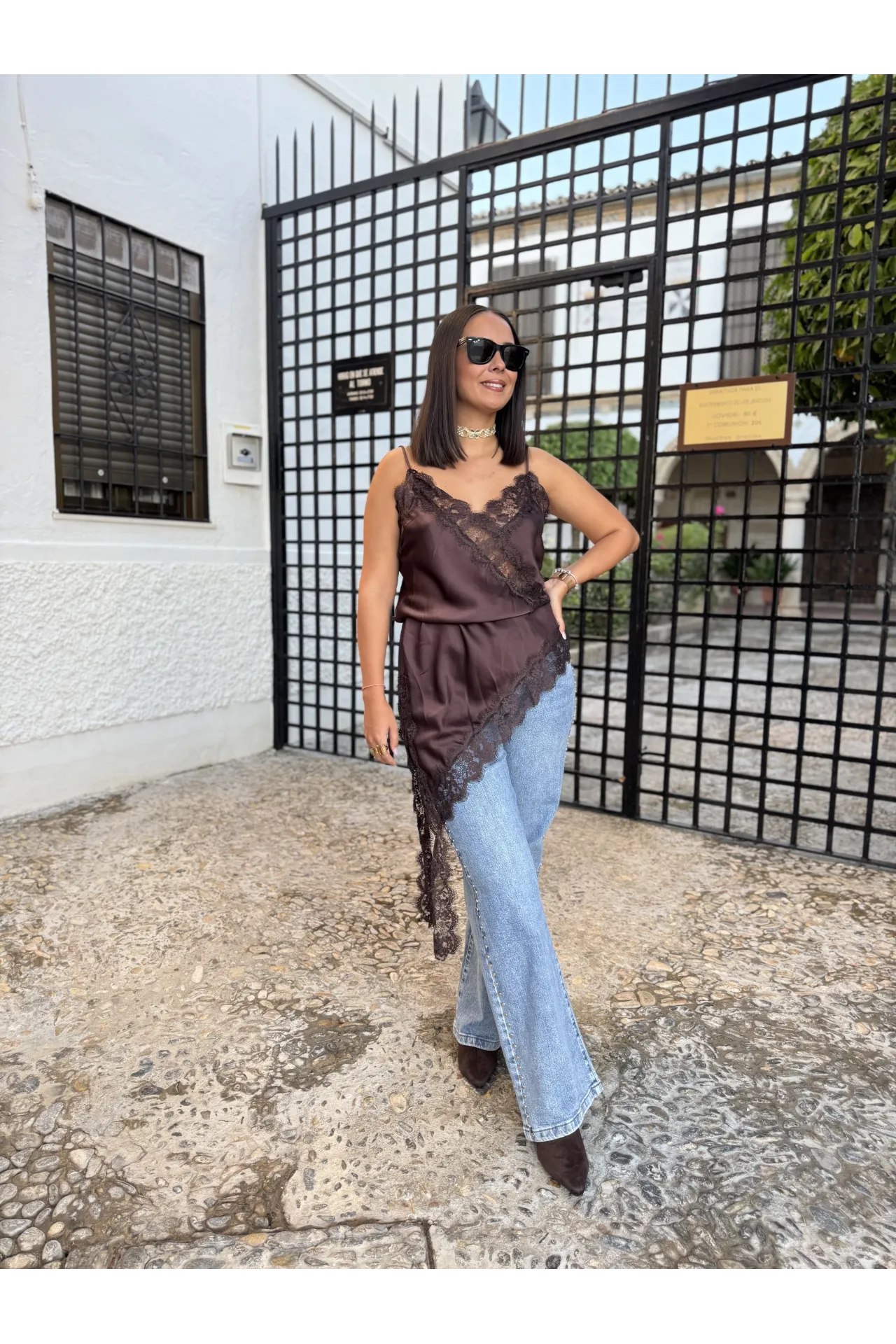JEANS WIDE LEG TACHUELAS DENIM