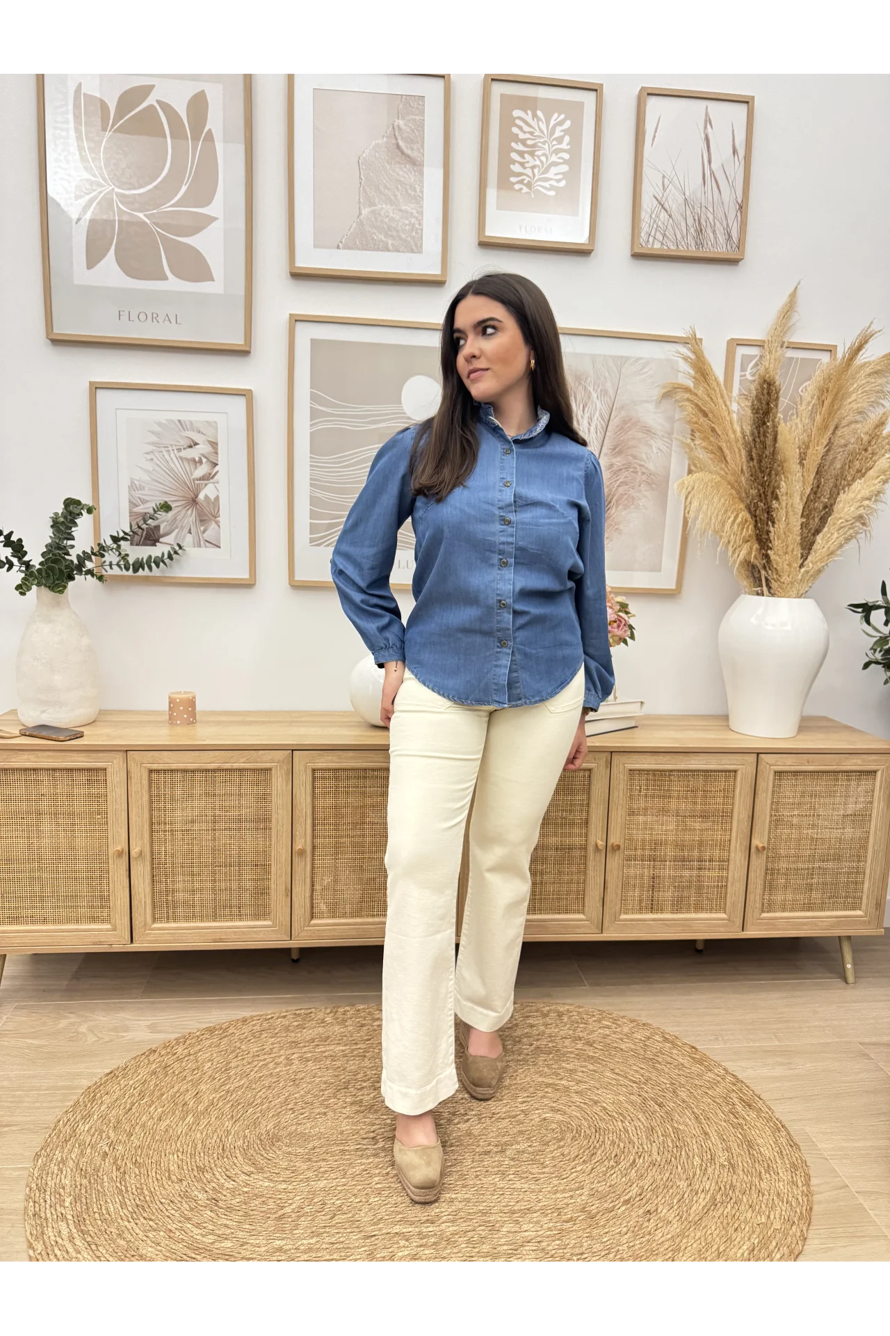JEANS WIDE BOLSILLOS VUELTA BEIGE CLARO