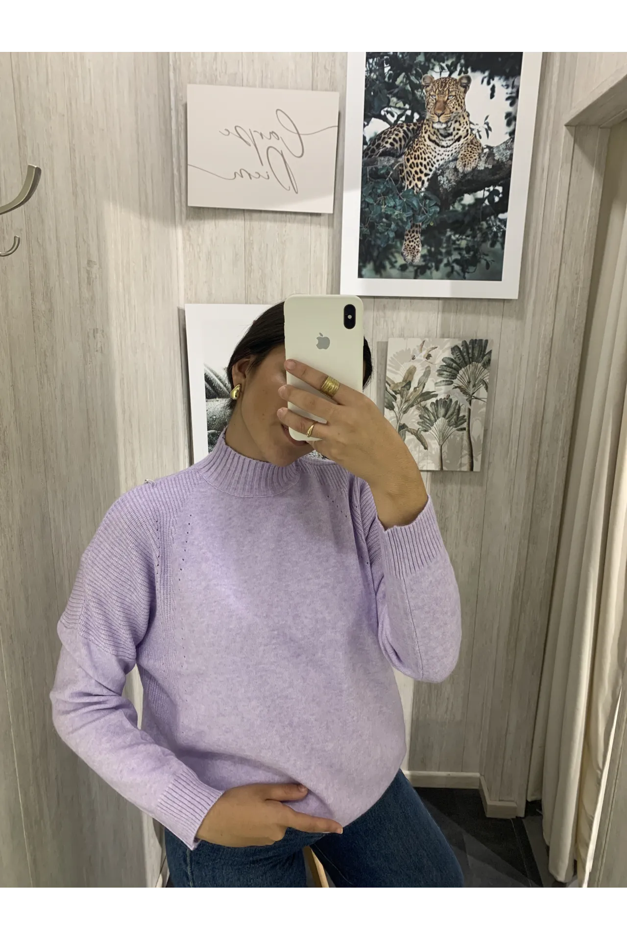 Jersey básico con detalle de canalé y perforado en las mangas. Cuello cisne y abertura en los laterales.