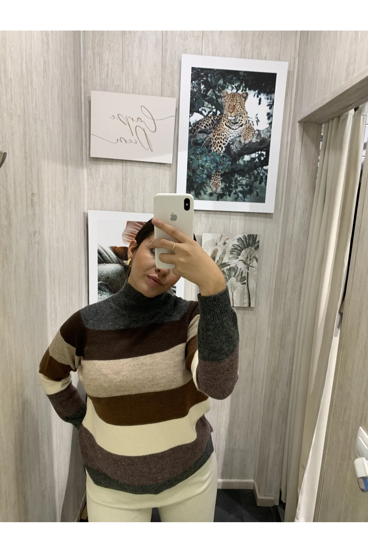 Jersey de punto con estampado de raya ancha. Cuello de cisne y manga larga. Abertura en los laterales.