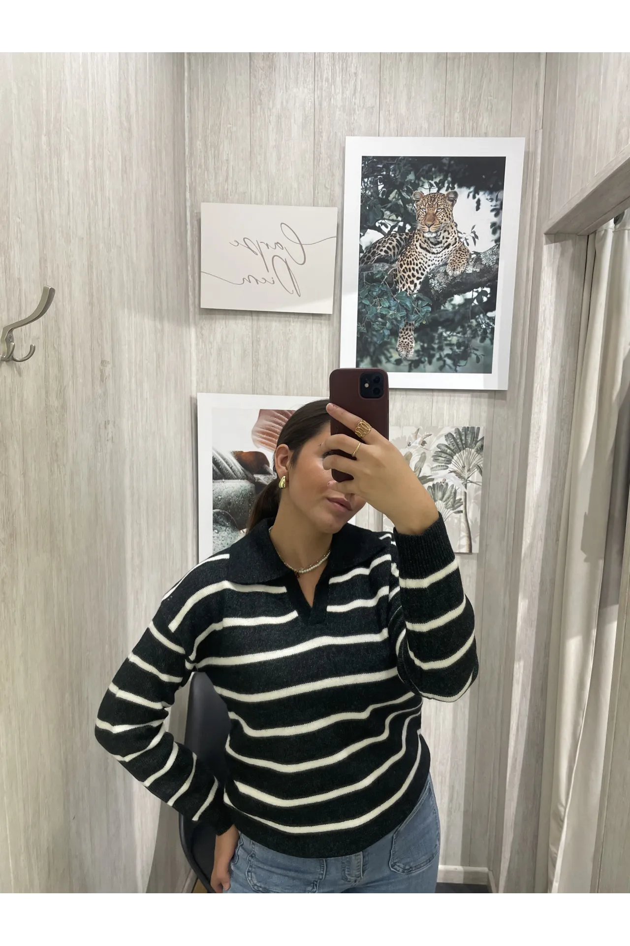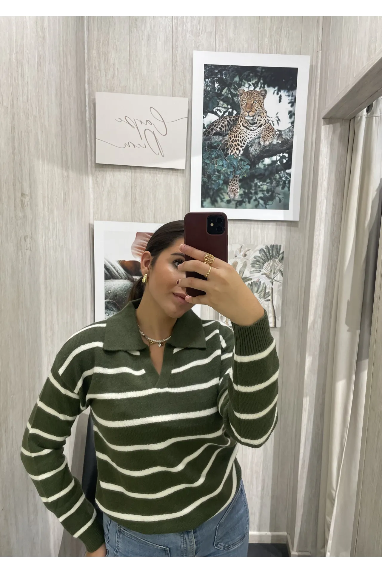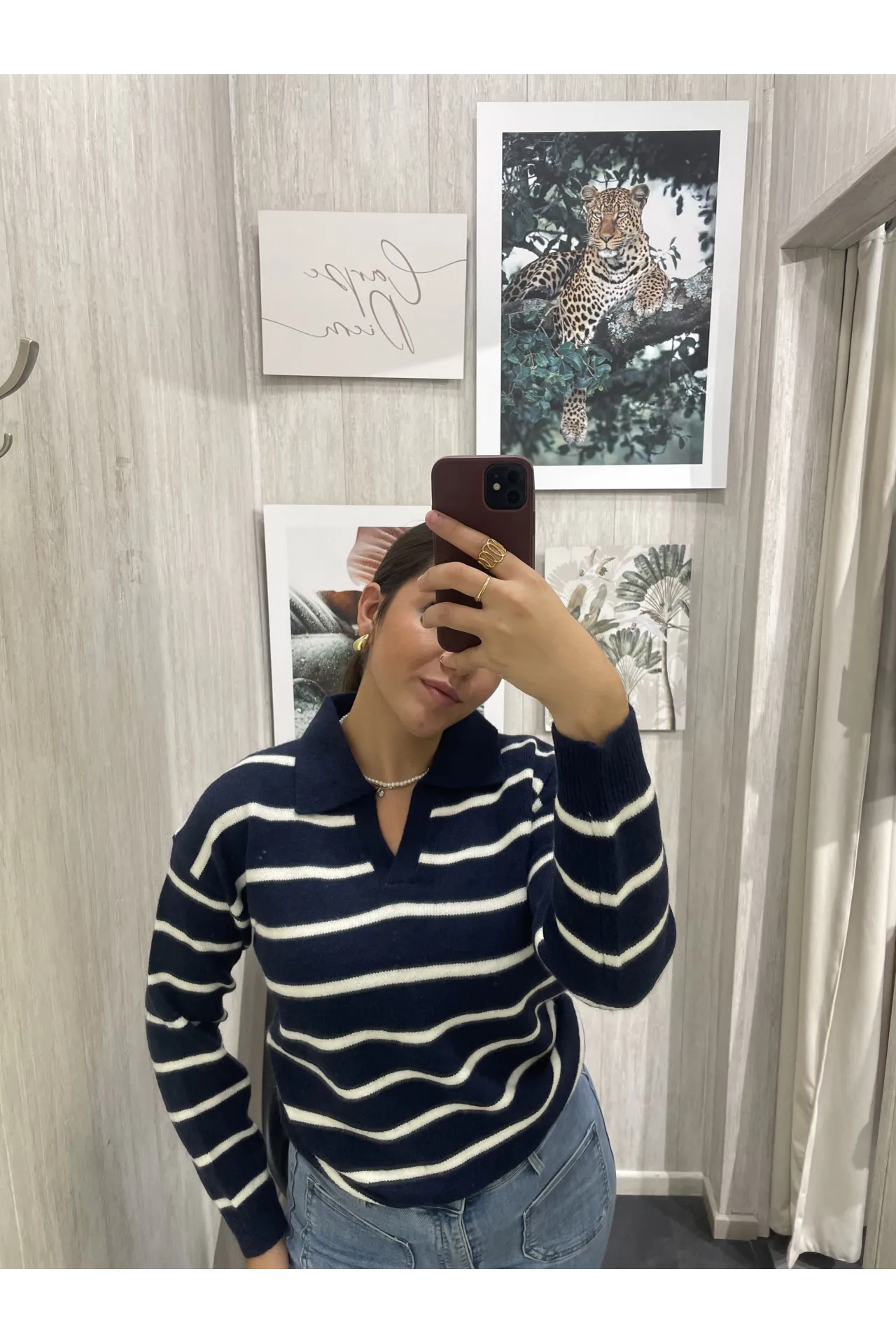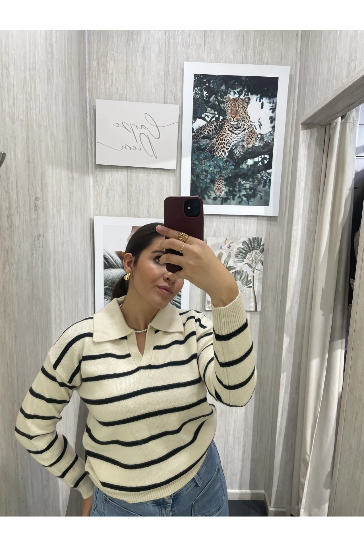 Jersey liso con tacto suave. Cuello polo y manga larga.