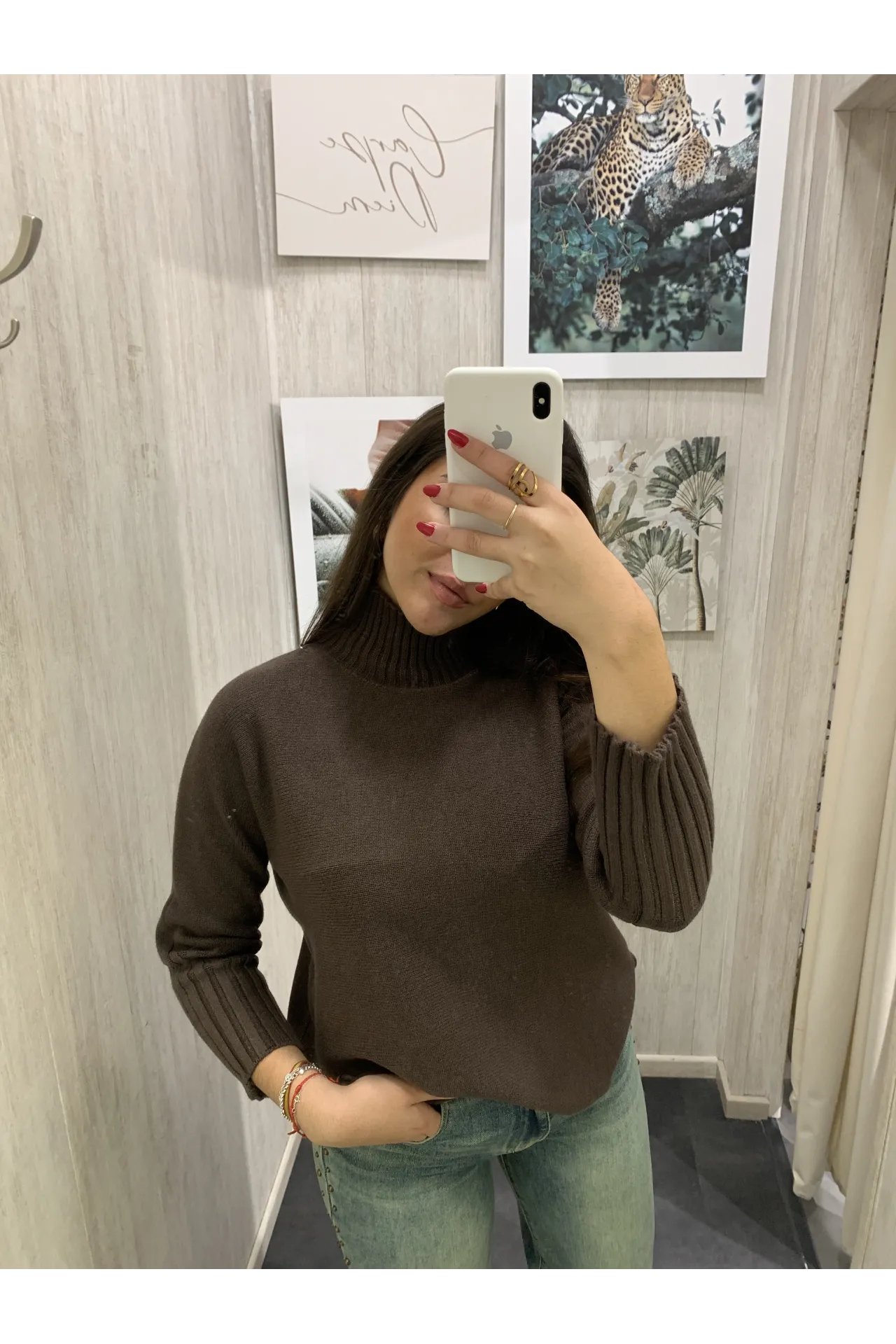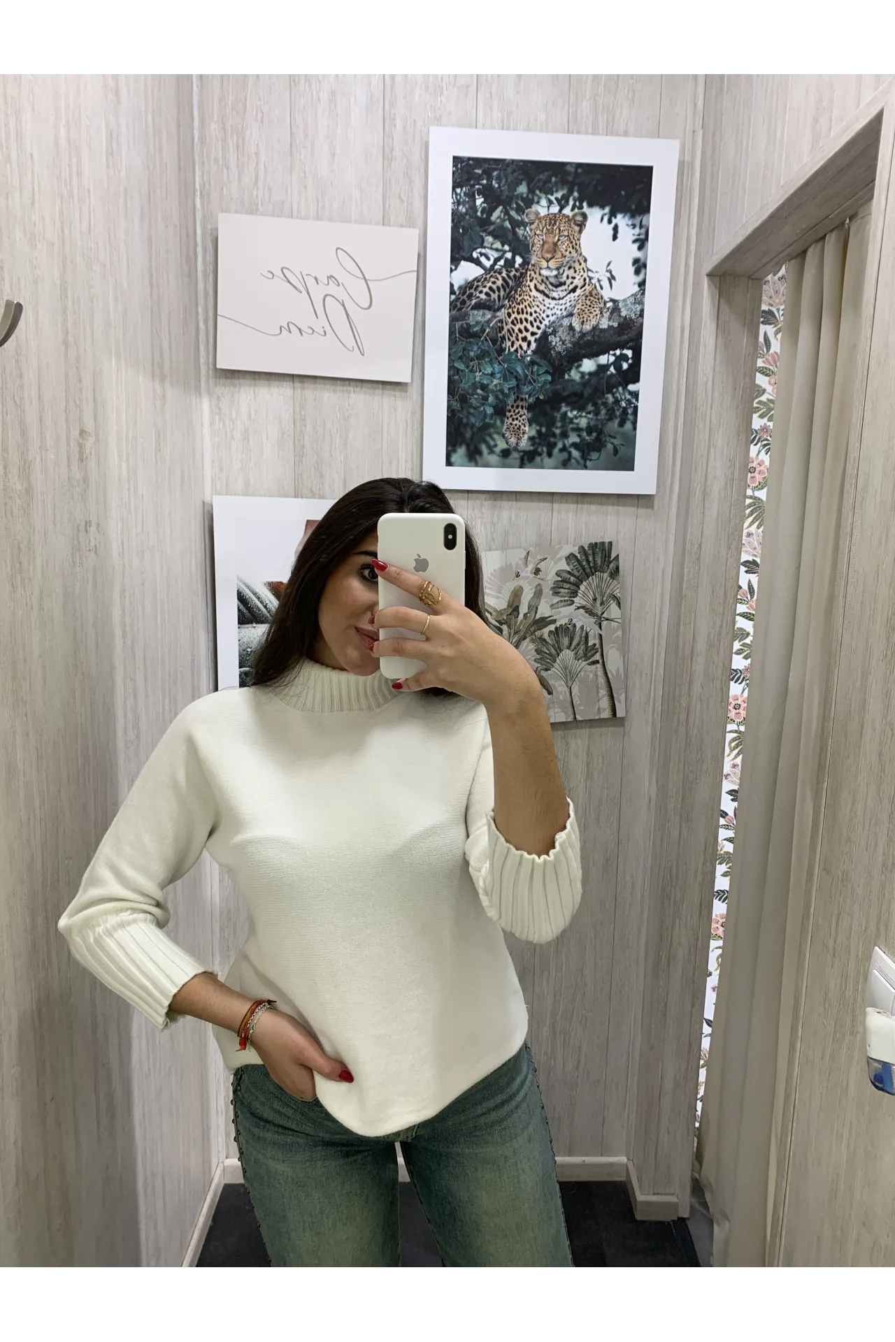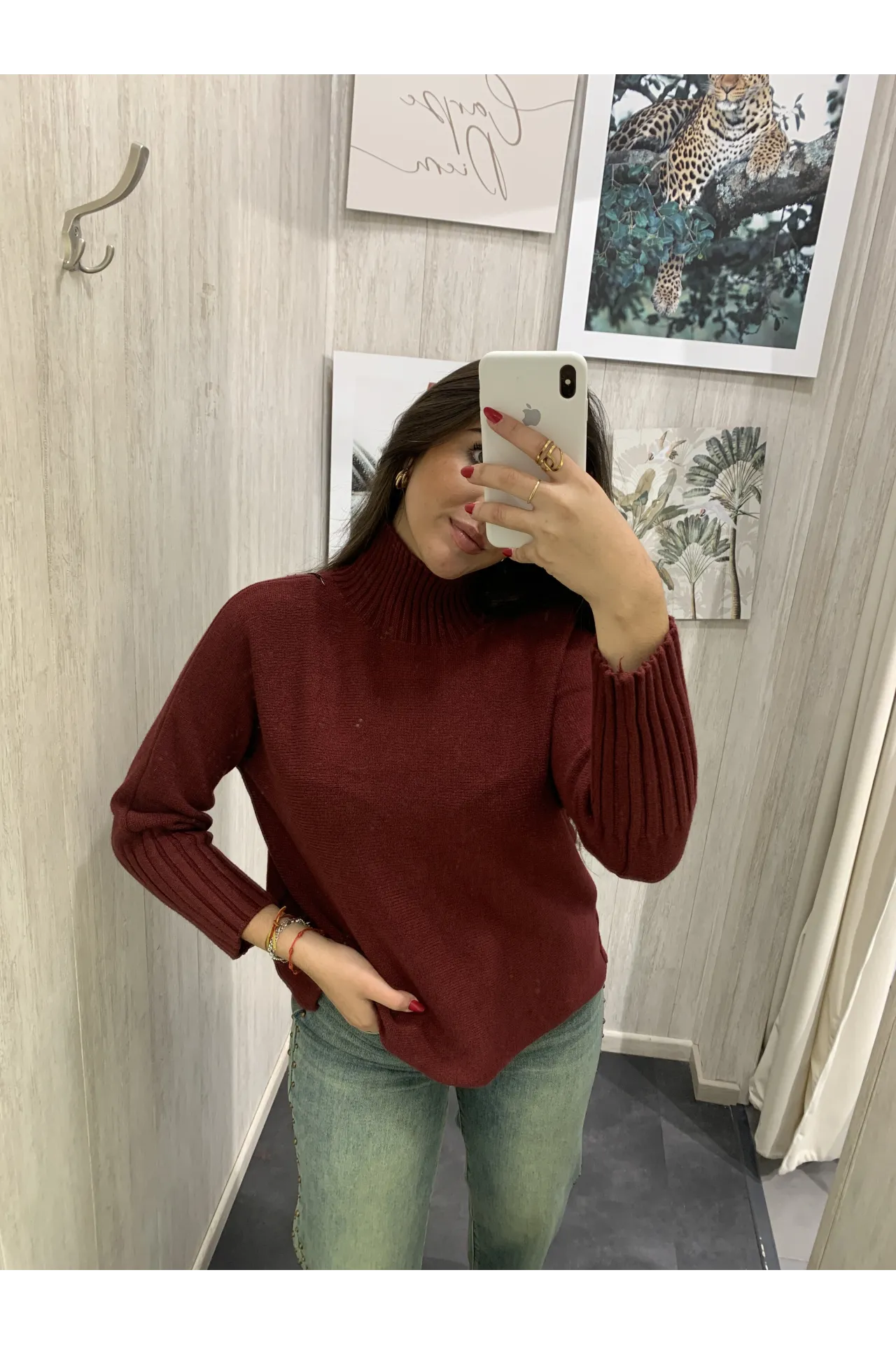 Jersey de punto liso con cuello subido y manga larga.