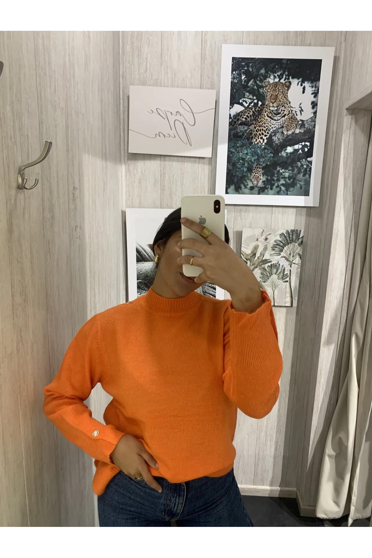 Jersey básico mezclado con cuello cisne y manga larga. Abertura en los laterales.