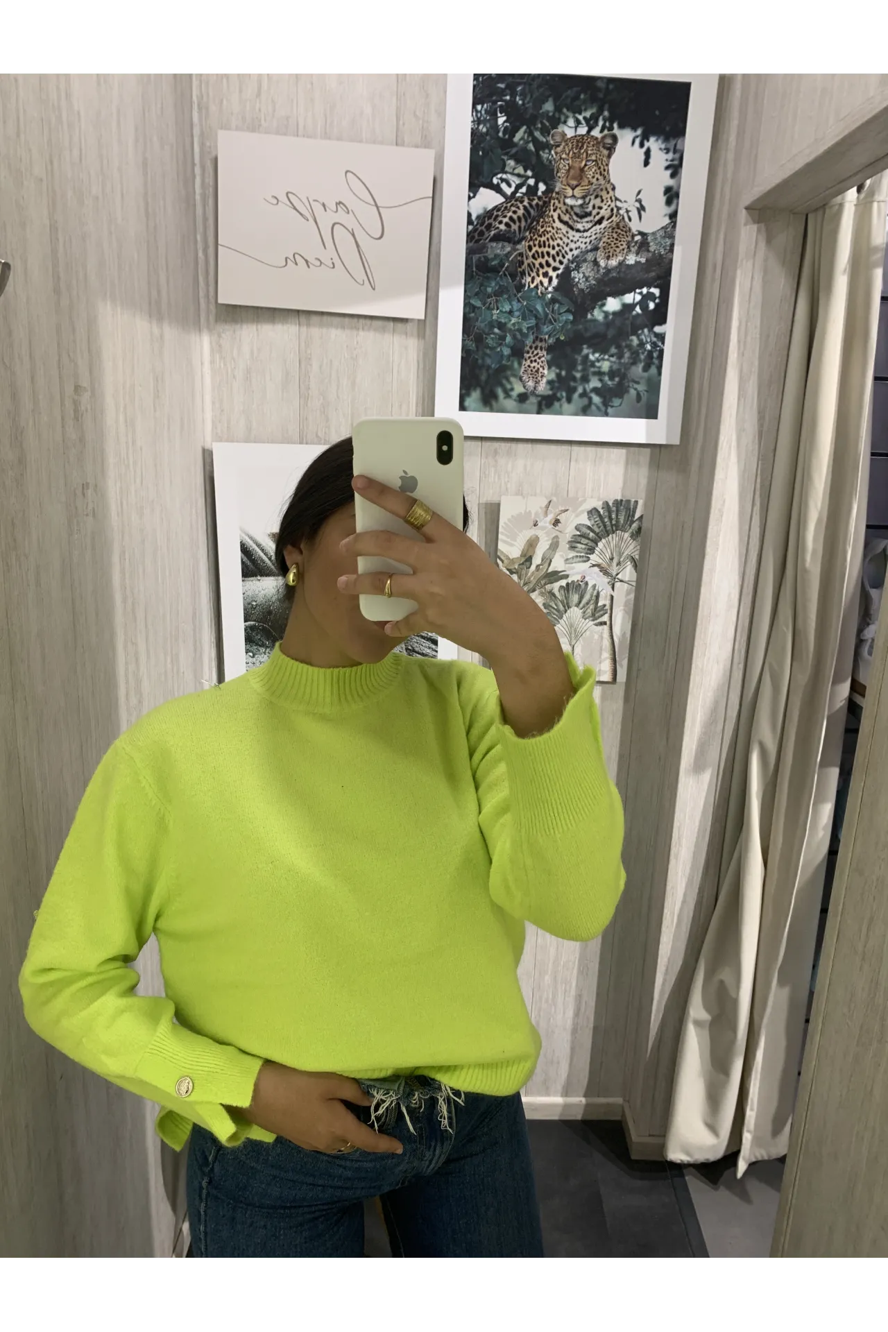 Jersey básico mezclado con cuello cisne y manga larga. Abertura en los laterales.