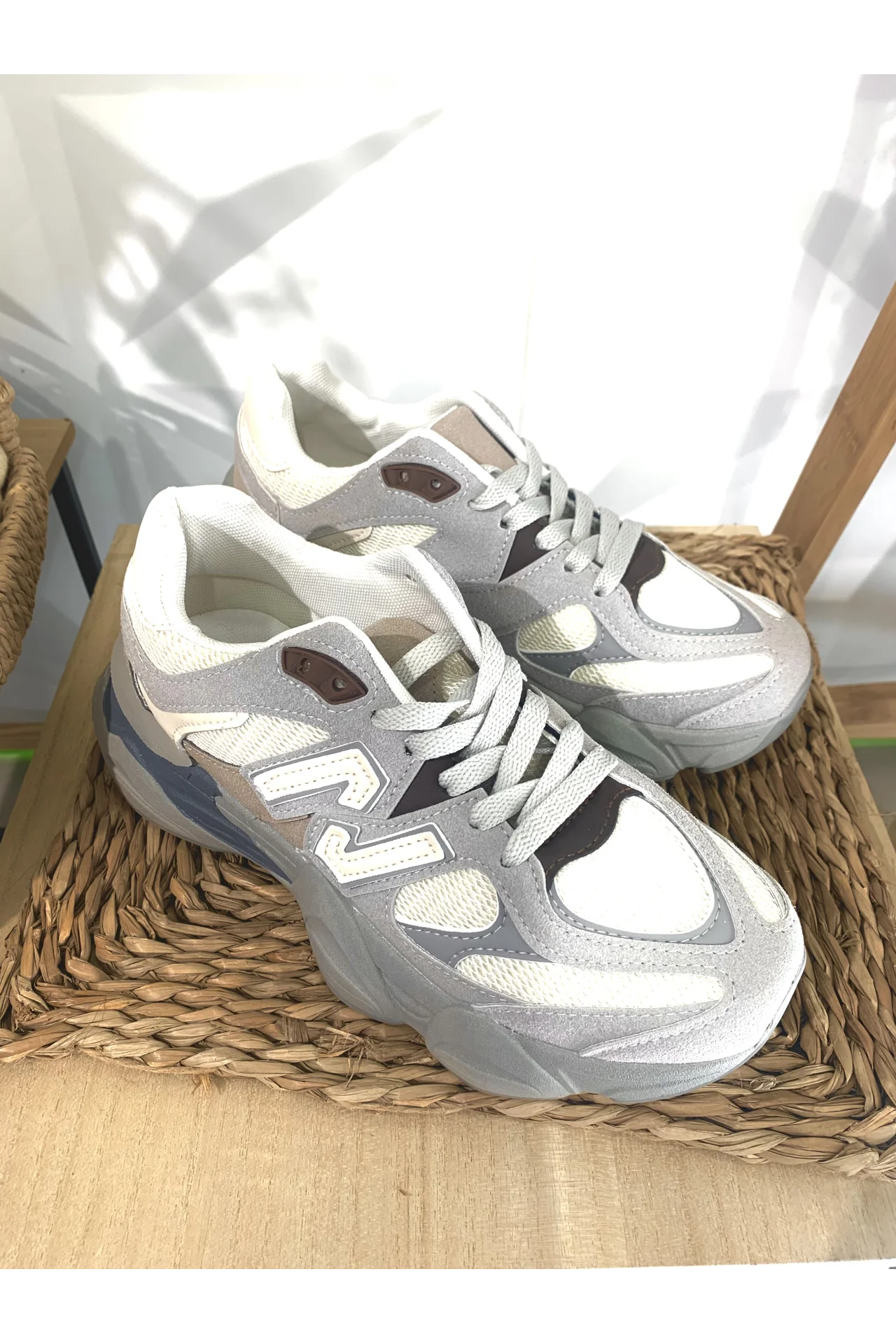 Zapatillas estilo deportiva con suela ancha. Combinación en colores y tejido.