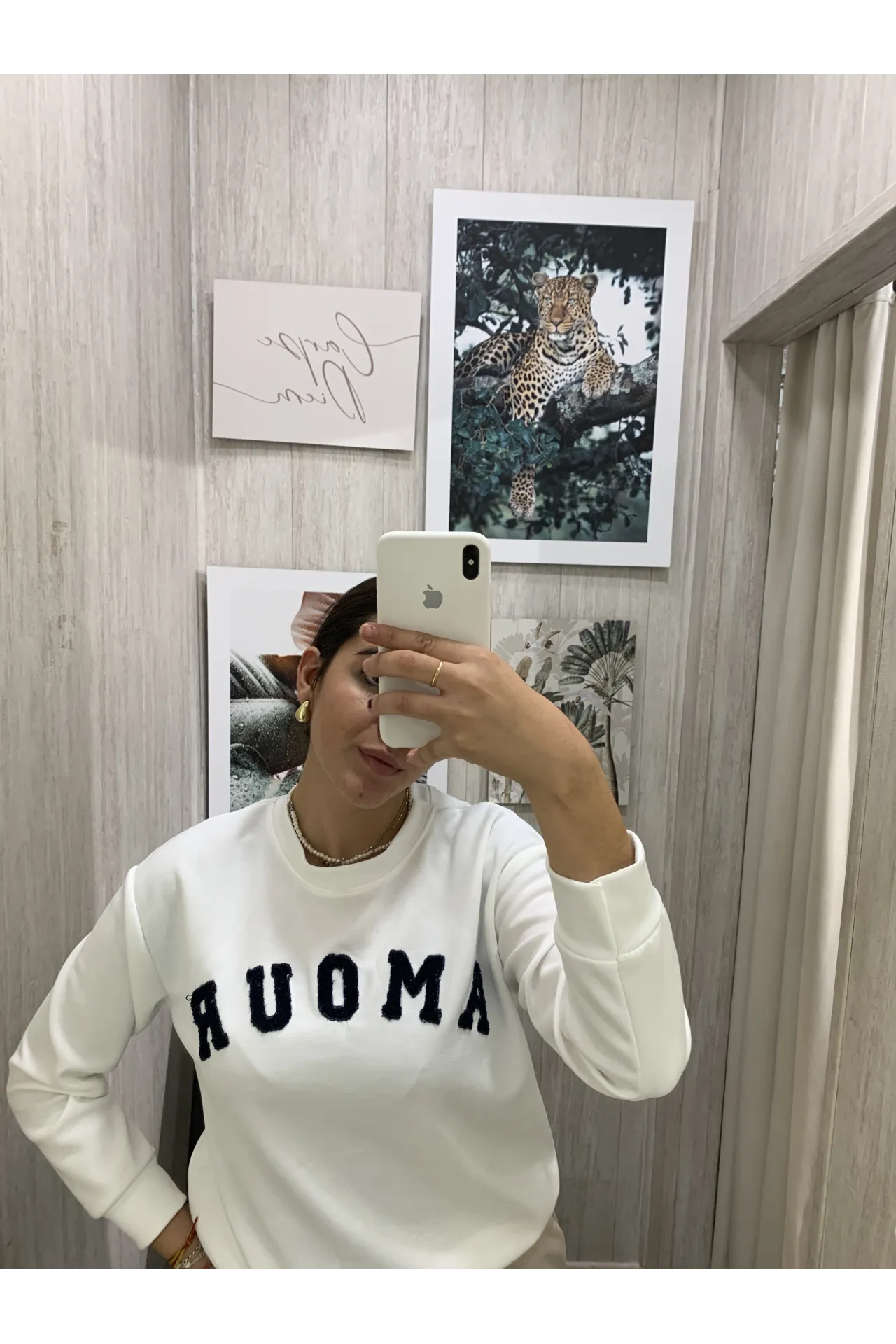 Sudadera de tacto suave con detalle de texto en la parte delantera. Cuello redondo y manga larga.