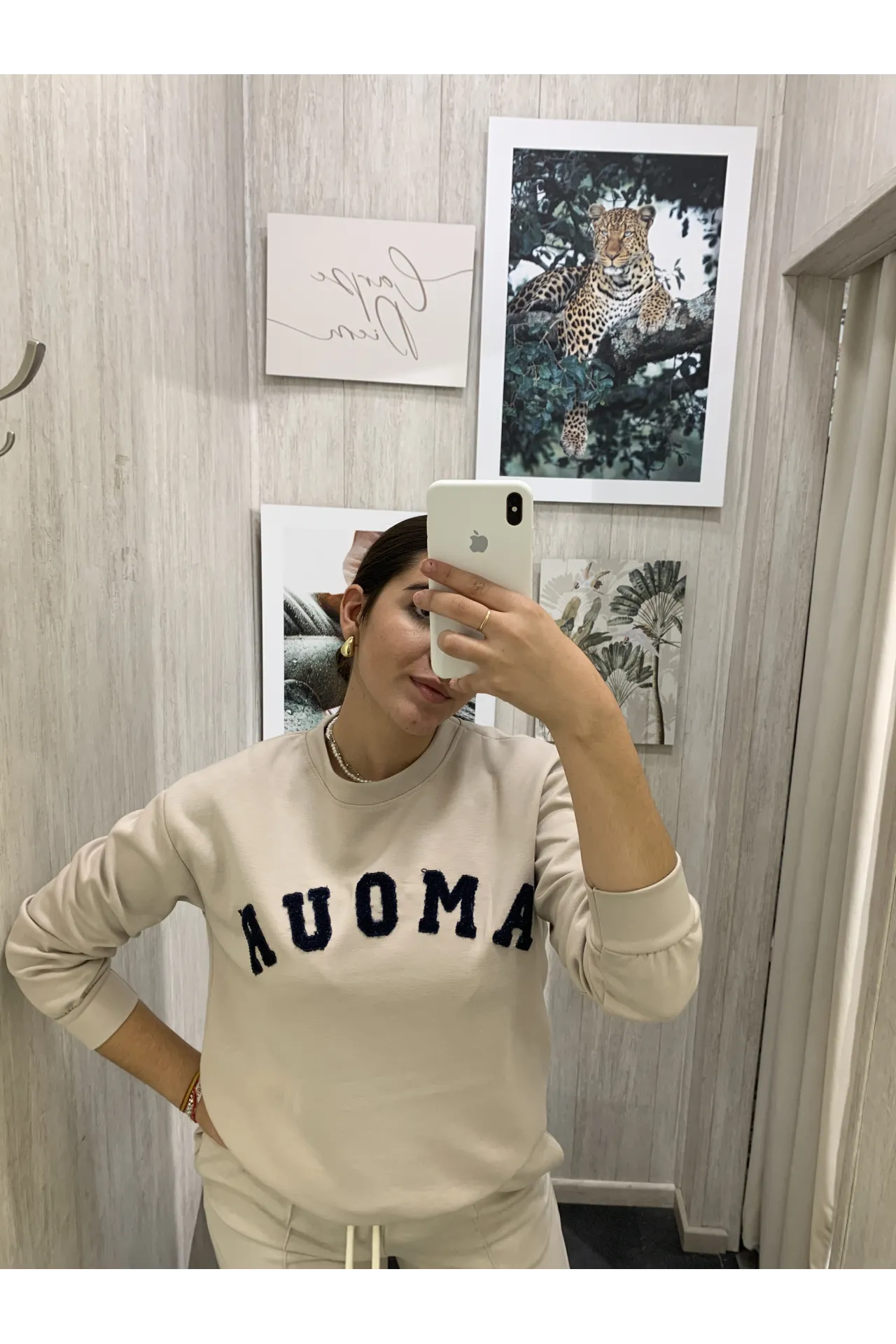 Sudadera de tacto suave con detalle de texto en la parte delantera. Cuello redondo y manga larga.