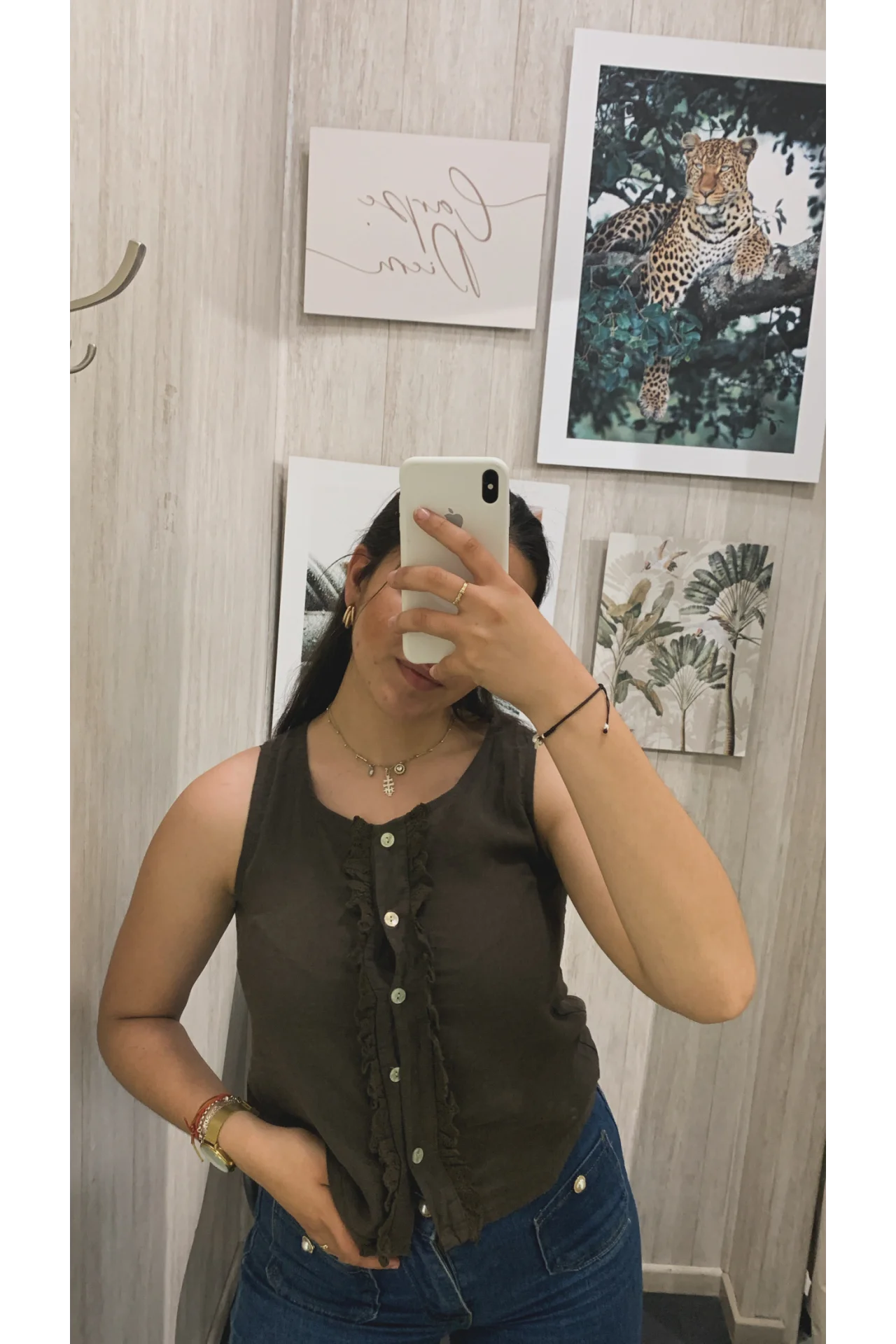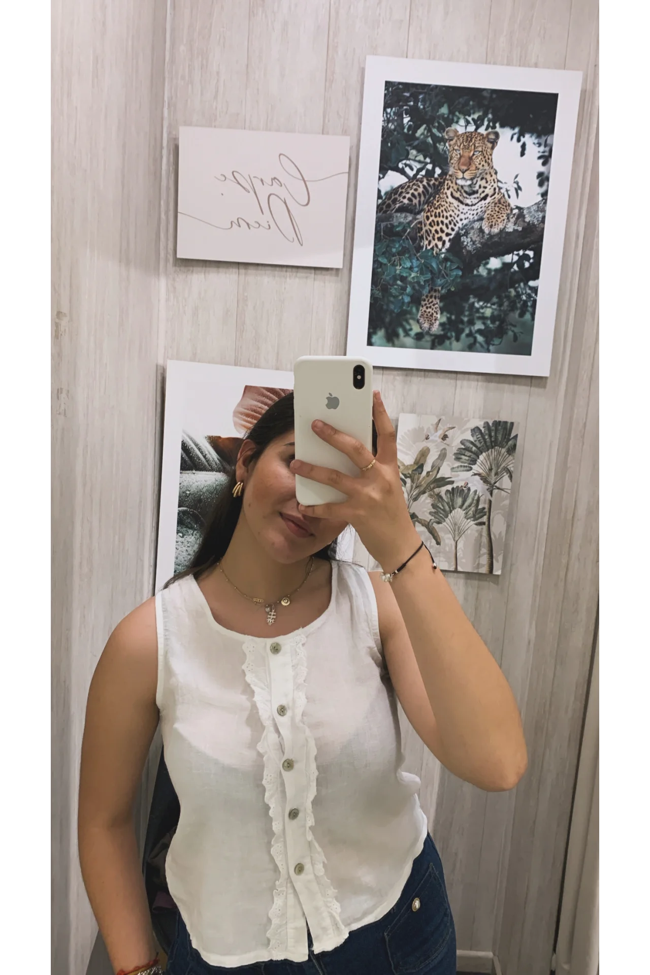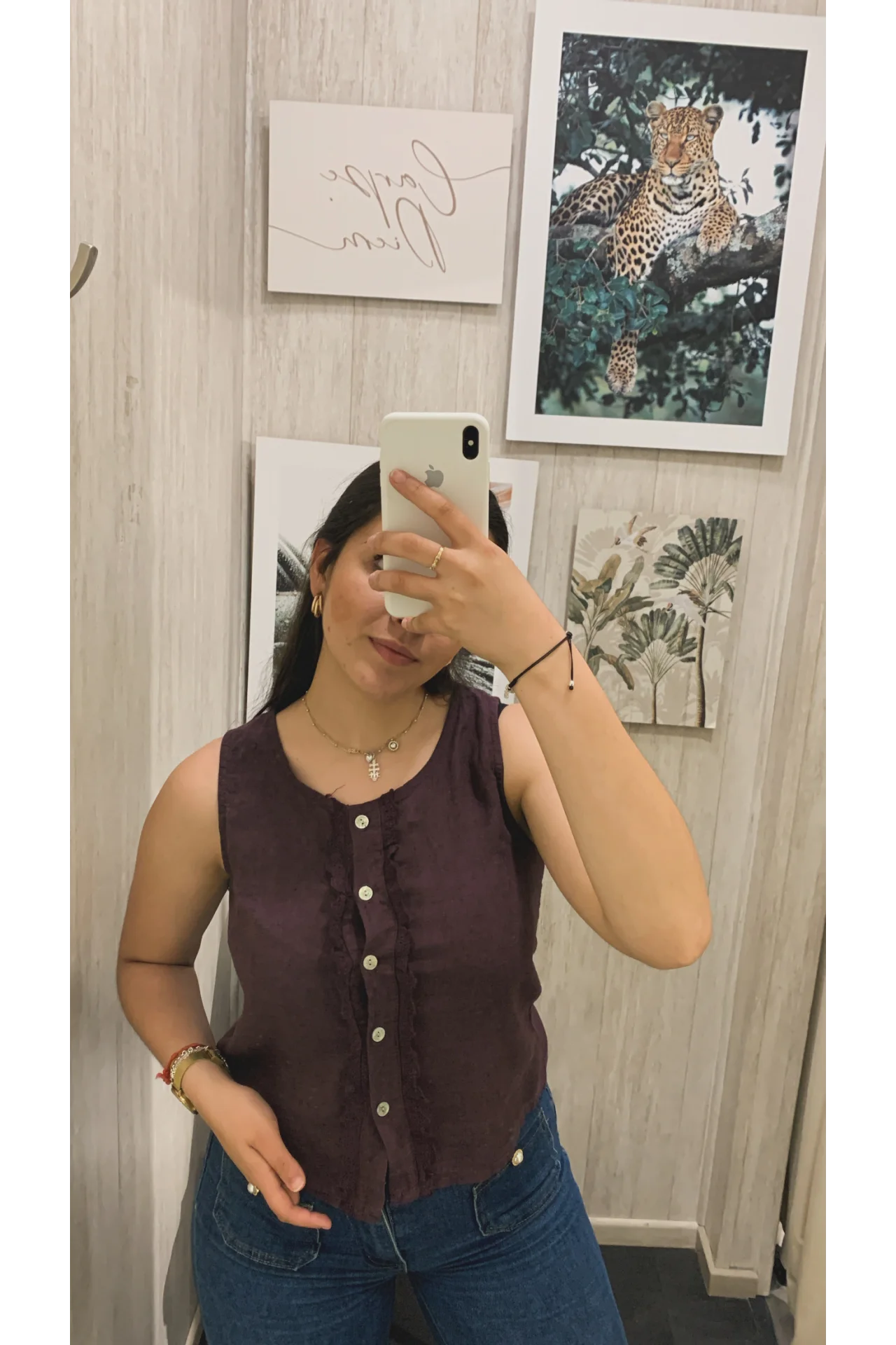 Top de tejido de lino con cierre con botones y detalle de tira bordada.